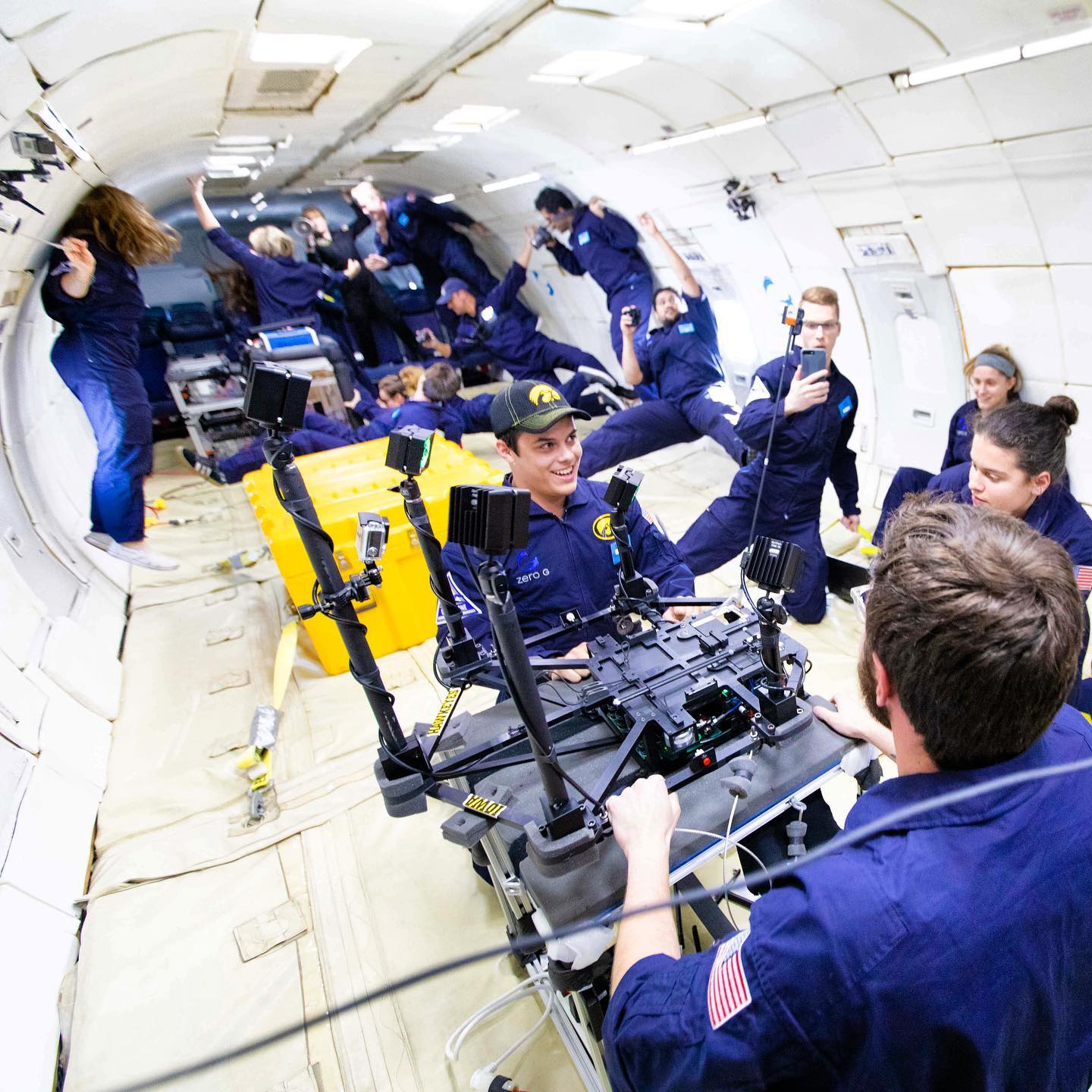 A “boom” is a deployable structure used to keep our magnetic field instruments at a distance from the rocket or satellite. This is so that it isn’t effected by the magnetic noise of the spacecraft. For cube sats (small satellites), booms are so small that they can’t operate in Earth gravity and need to be tested in microgravity. University of Iowa students were part of a team that tested the booms at the ZERO-G facility in Florida in November 2019.